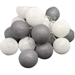 Grey and White Alternate Cotton Ball String Fairy lights - 5cm diameter