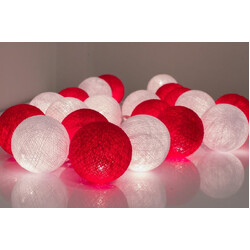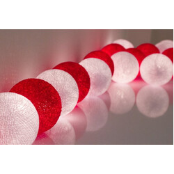 Red and White Alternate Cotton Ball String Fairy lights - 5cm diameter