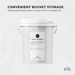1.2kg Pharmaceutical Grade Sodium Ascorbate Powder in resealable tub.