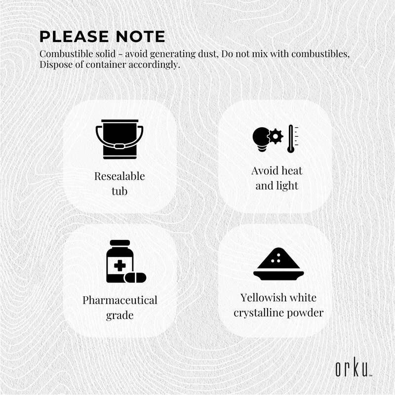 1.2kg Pharmaceutical Grade Sodium Ascorbate Powder in resealable tub.