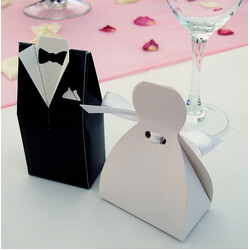 10 Pack of 5 Bride Gown and 5 Groom Tux Wedding Bridal Bomboniere Favor Candy Choc Almond Box - NW