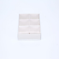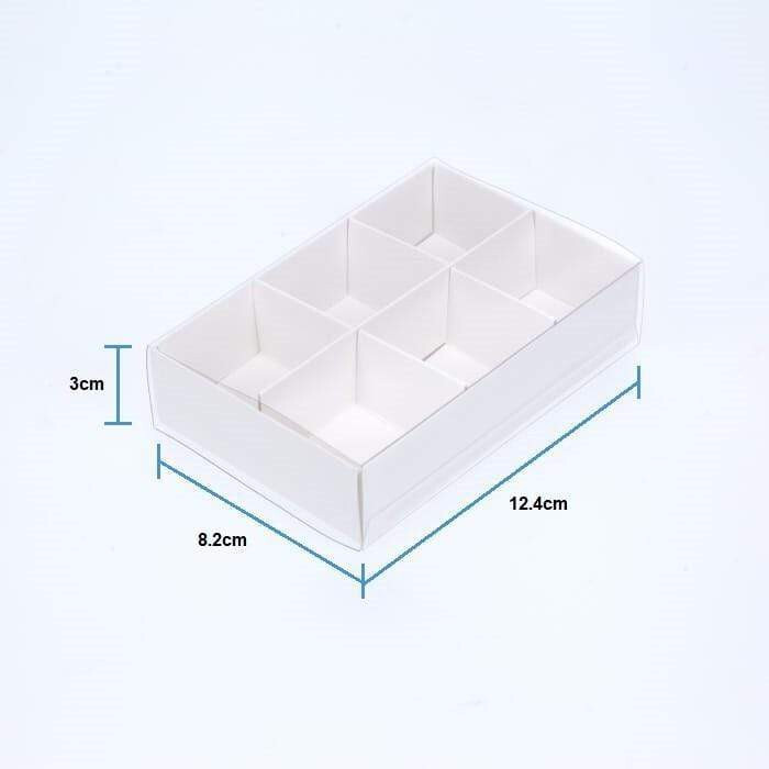 10 Pack of White Card Chocolate Sweet Soap Product Reatail Gift Box - 6 Bay Compartments - Clear Slide On Lid - 12x8x3cm