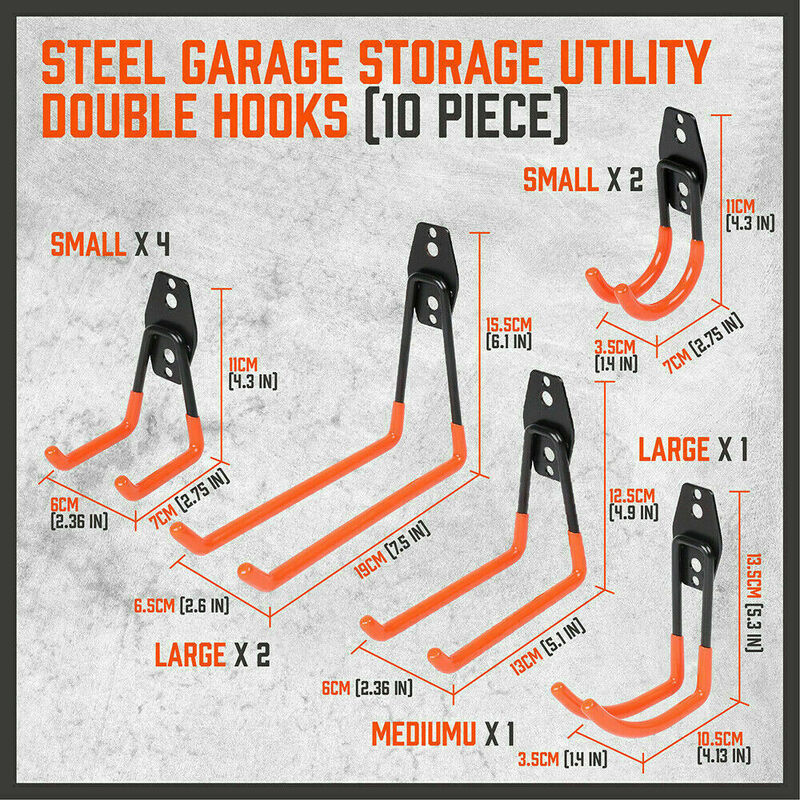 10-Pack Wall Mount Garage Hooks Tool Storage Workshop Organizer Heavy Duty Steel