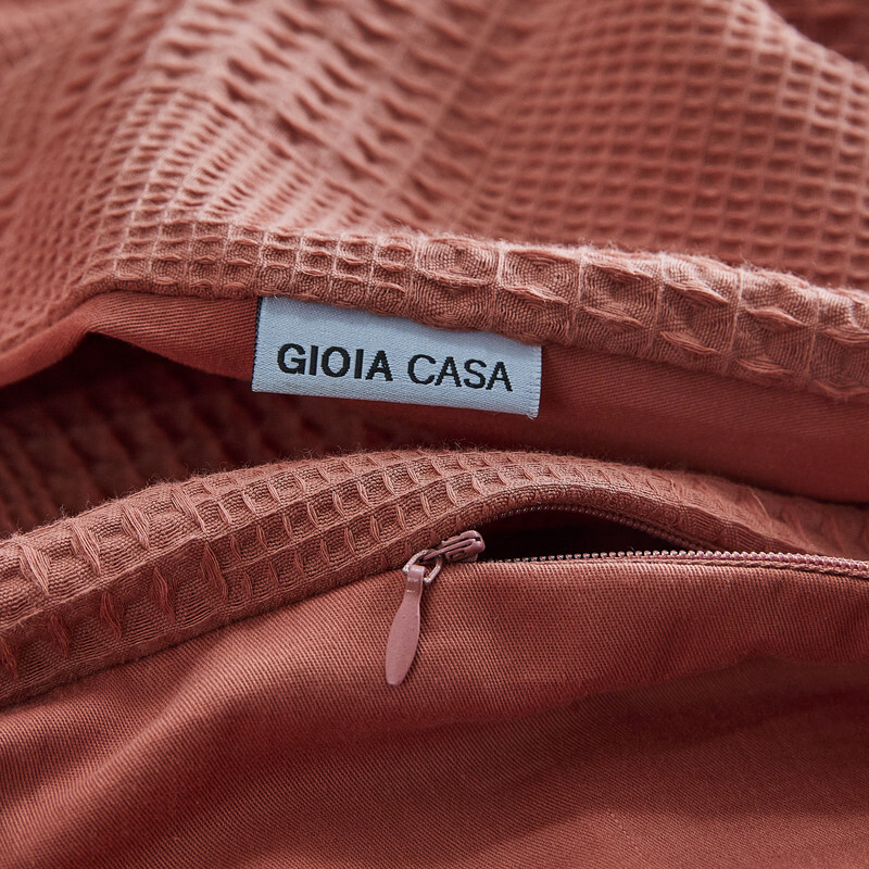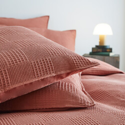 100% Cotton checkered waffle quilt cover set super king size -Terracotta