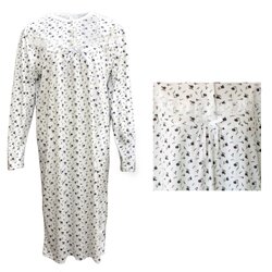 100% Cotton Women Nightie Night Gown Pajamas Pyjamas Winter Sleepwear PJs Dress, Purple Flowers, 20