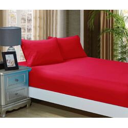 1000TC Ultra Soft Fitted Sheet & 2 Pillowcases Set - King Size Bed - Red