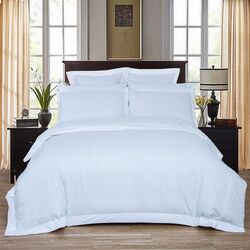 1000TC Ultra Soft Striped Queen Size White Duvet Quilt Cover Set