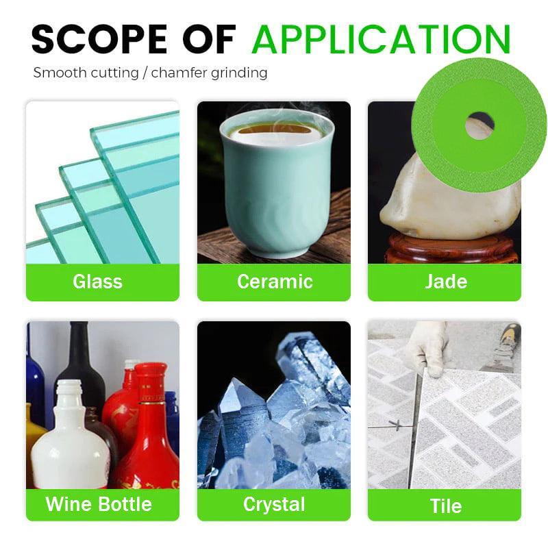 5. Wide Application: For smooth cutting, chamfering and grinding of glass, jade, crystal, wine bottles, ceramics, ceramic tiles and other materials.