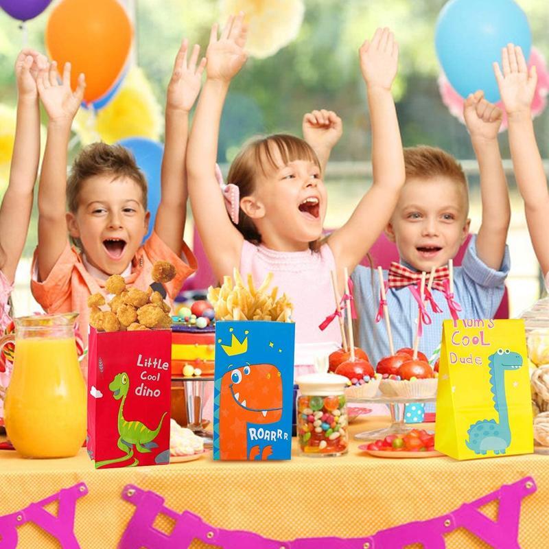 100PCS Dinosaur-Themed Kraft Party Bags for Kids Birthday