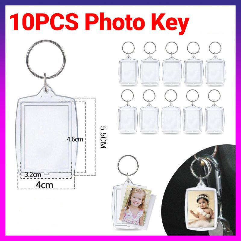 10PCS Clear Acrylic Photo Keyring - DIY Picture Frame Keychain Gifts