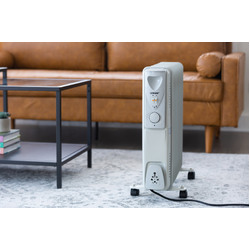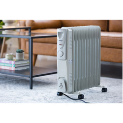 With an adjustable thermostat to choose from three heat settings, achieving and maintaining the ideal room temperature is simple. Appreciate a steady flow of heat throughout the room for a stable and consistent temperature. This 2400-watt oil column heater has 11 fins and automatically clicks on and off to sustain the warmth of the room. Equipped with a convenient cord storage on the front and free-standing with the included castor wheels, this oil column heater is ready to roll about each room with ease.