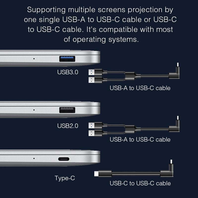 3): Some new models of laptops have two TYPE-C ports, but only one port can output signal in function, which makes them only support one screen display. You can use an additional HDMI cable to start the other monitor screen.