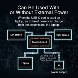 2): Due to the insufficient voltage of some laptops( 5V 2A /10w or above Power is required), one screen may not work normally. You can try to use the attached adapter to power or use an additional USB cable to power the screen.