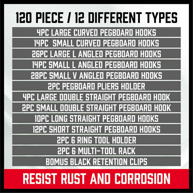 120Pc Pegboard Hooks Set Slat Wall Hanger Garage Organizer Shop Display Hanging