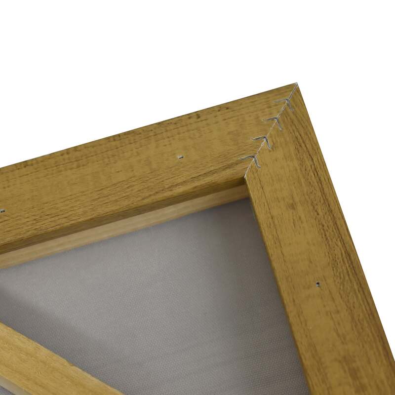 Stretched and gallery wrapped around a wooden stretcher and finished with a floating frame. There is a gap between the frame and print, which creates the floating effect and literally makes the canvas print stand out even more.