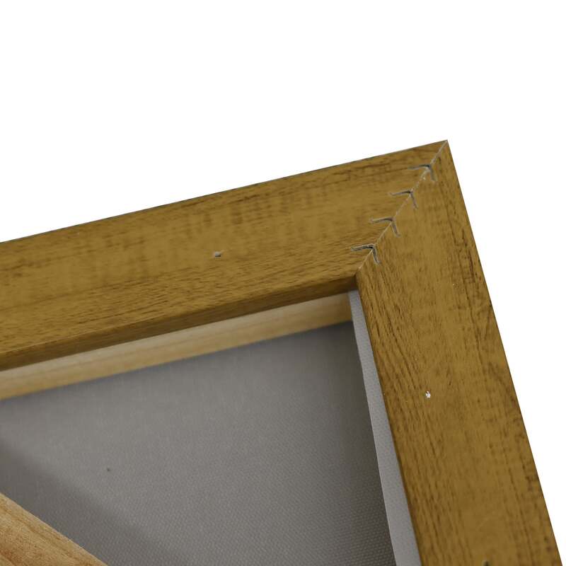 Stretched and gallery wrapped around a wooden stretcher and finished with a floating frame. There is a gap between the frame and print, which creates the floating effect and literally makes the canvas print stand out even more.