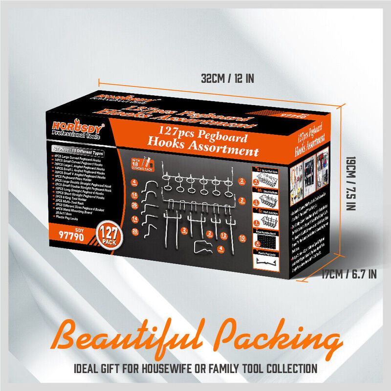 - Product includes 16 different types of hooks and organizers, and is fully functional for a wide range of hanging applications. Made for 1/8 inch and 1/4 inch pegboard, Keep tools organized and ready.