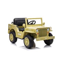Let your child's imagination go wild with our new Military jeep. Hop in, press the start button to be transported to far off places, be it a safari, the jungle, or the desert. This ride on comes with a plastic shovel if you get stuck in a rut. This thing is so rugged you will think it's the real thing!