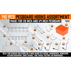 142Pc Pegboard Hooks Set Peg board Hanger Assortment Storage Trays Organizer Bin