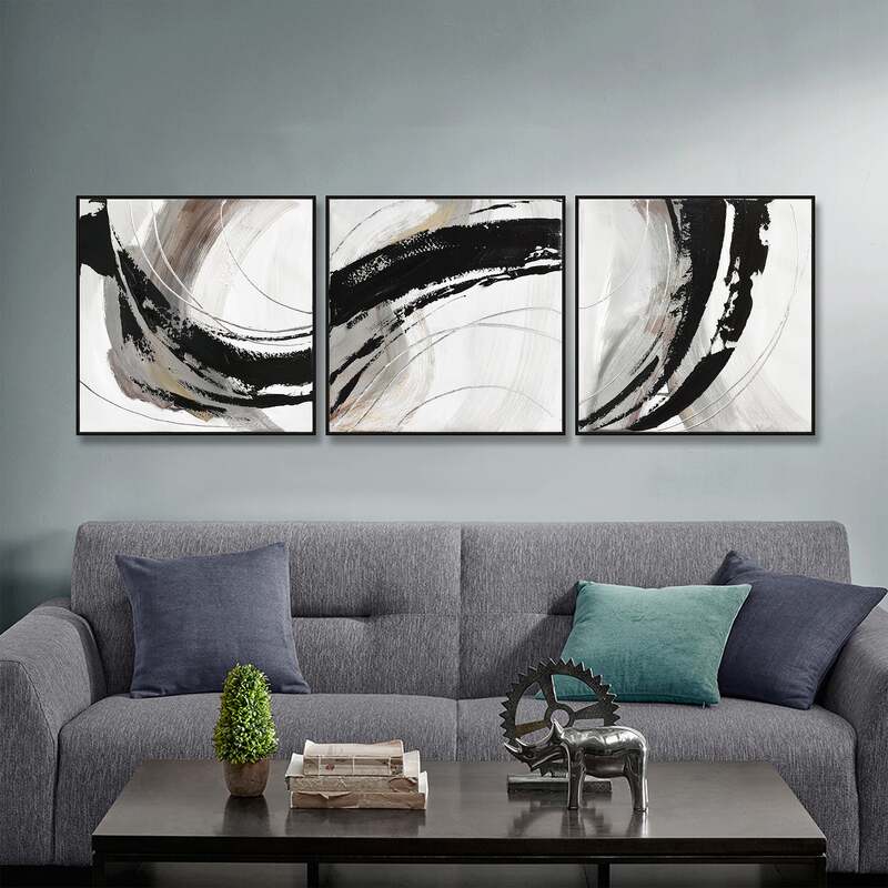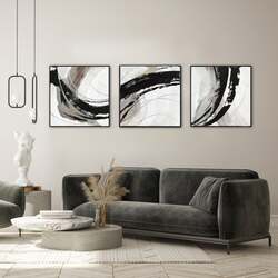 150X50cm Set of 3 Black Framed Hand Painted Canvas Wall Art