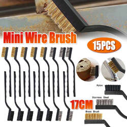 15PCS Stainless Steel Nylon Brass Scrub Brushes Metal Remover Mini Wire Brush Set