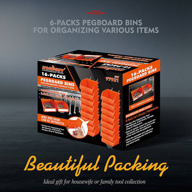 16Pc Pegboard Bins Peg Board Parts Storage With Steel Hooks Tools Organiser Tray