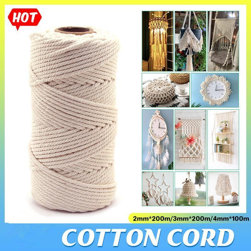 2/3/4Mm Macrame Rope Natural Beige Cotton Twisted Cord Artisan Hand Craft