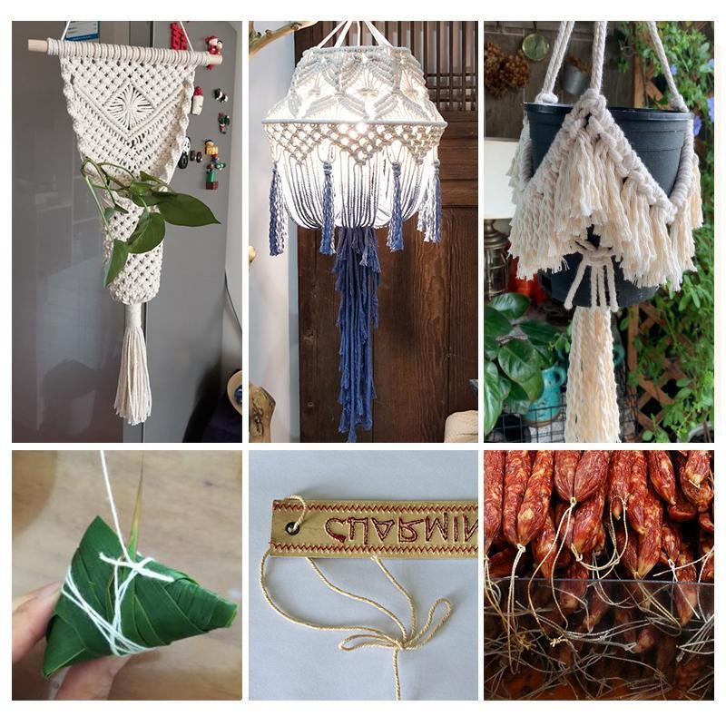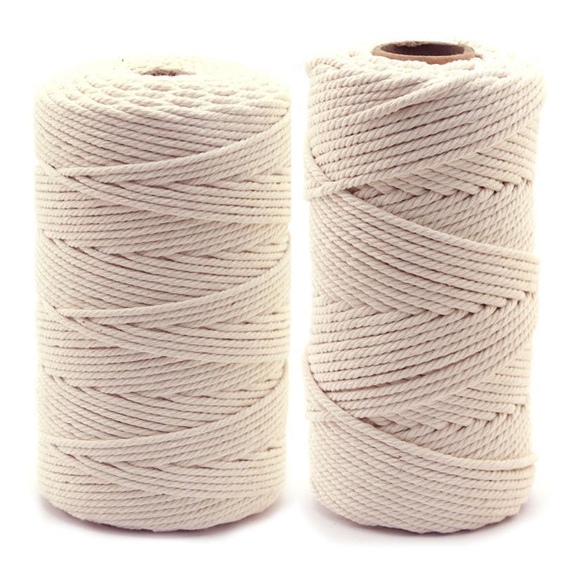 2/3/4Mm Macrame Rope Natural Beige Cotton Twisted Cord Artisan Hand Craft