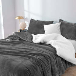 2 in 1 teddy sherpa duvet cover set and blanket super king charcoal