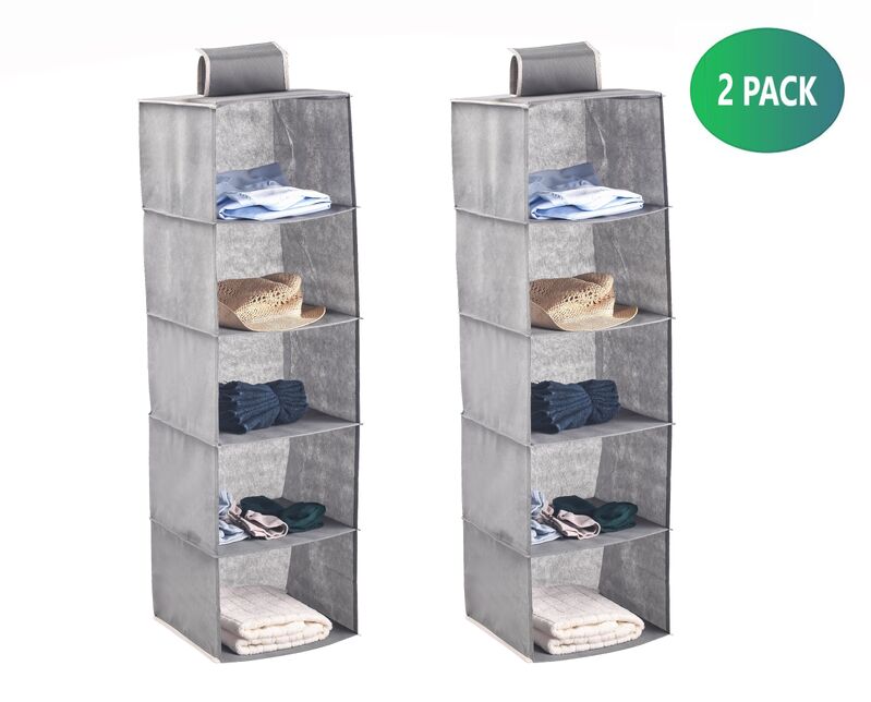 2 Pack 5-Tier Shelf Hanging Closet Organizer and Storage for Clothes (Grey)