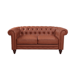 2 Seater Brown Sofa Lounge Chesterfireld Style Button Tufted in Faux Leather