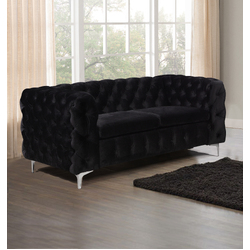 2 Seater Sofa Classic Button Tufted Lounge in Black Velvet Fabric with Metal Legs