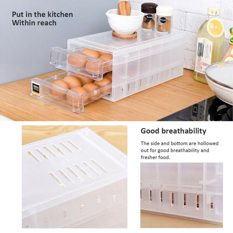2 Tiers Double Layer 24 Grids Egg Storage Box Tray Kitchen Refrigerator Containe
