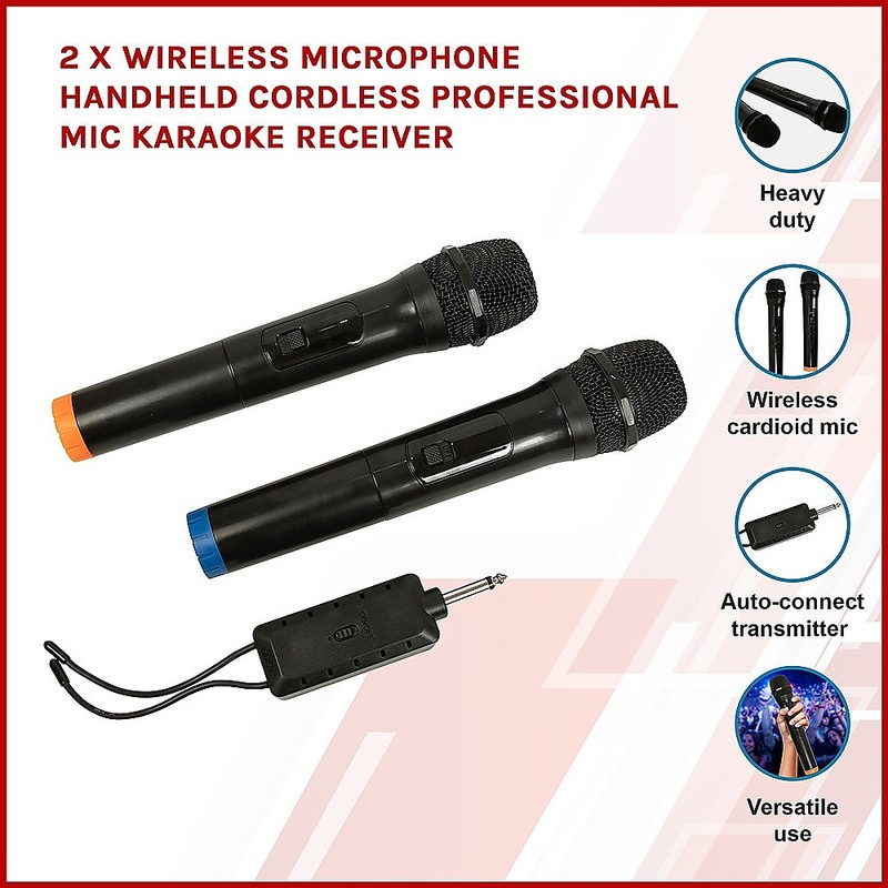 Whether you need a microphone for casual home singing or professional performances, Randy & Travis Machinery has got you covered with the 2X Wireless Microphone Handheld Cordless Professional Mic Karaoke Receiver. These microphones offer high fidelity and super endurance – meaning you can benefit from top-quality and consistent sound reproduction. Their sensitivity to sound ensures a clear pitch even when holding the mic further away. In addition, both mics have a long-lasting battery life and capacity which guarantees you eight hours of persistent singing time and two hours of full utility charge. The digital power display is a convenient feature – allowing you to check battery life at a glance.