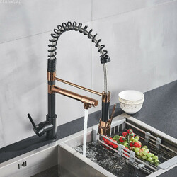 2022 Matte Black & Rose gold pull out with spray function spring kitchen mixer tap faucet