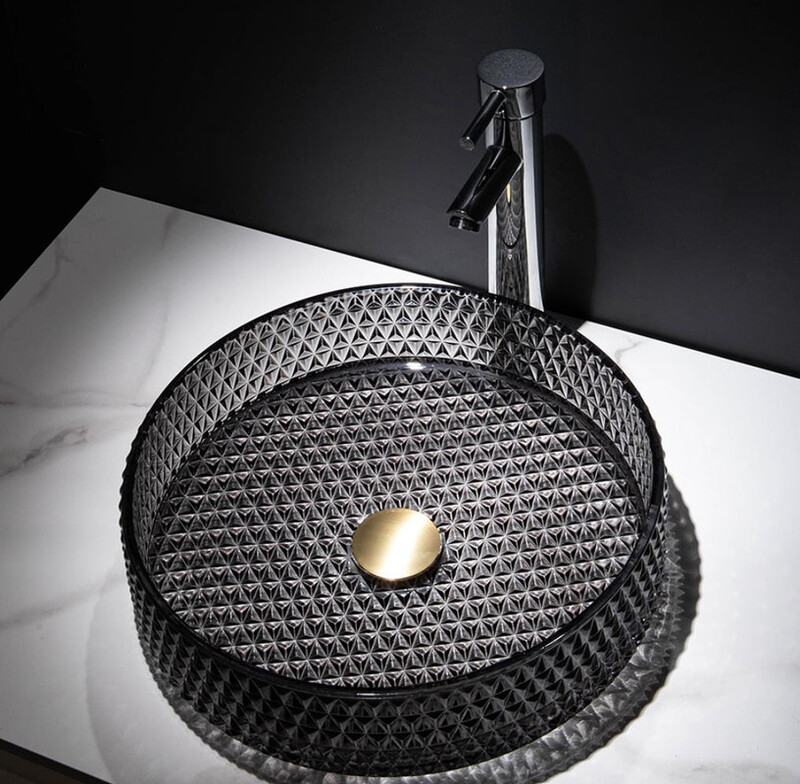 2022 Ultra Modern Hotel Style Glass wash Round Black basin counter top counter top Sink Transparent Crystal
