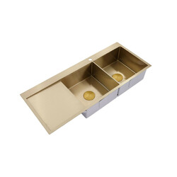 2023 Burnished Brass Gold stainless steel 304 double bowl kitchen sink with drainer tap hole