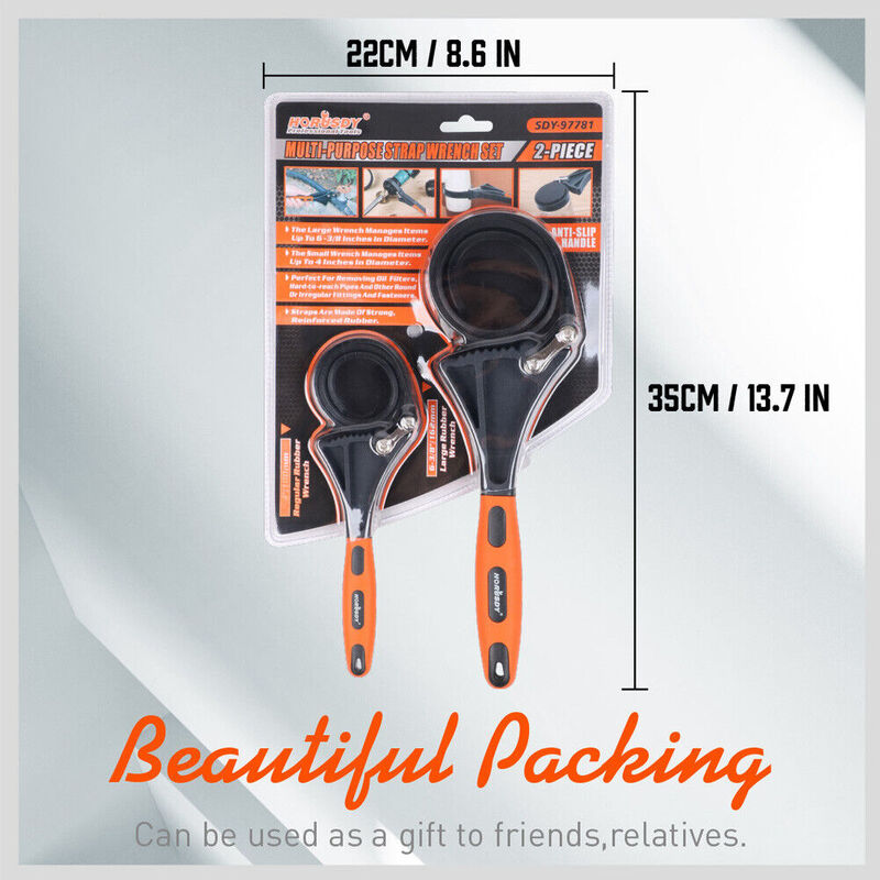 2Pc Adjustable Wrench Set Rubber Belt Strap Spanner Multi-Purpose Jar Cap Opener