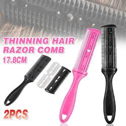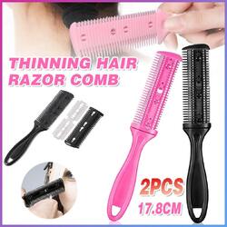 2PCS Razor Comb With Blades Razor Trimmer DIY Double Sides Hair Thinning Comb