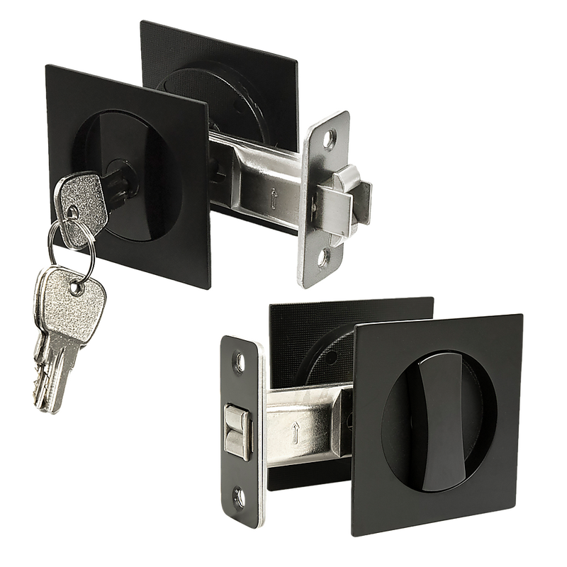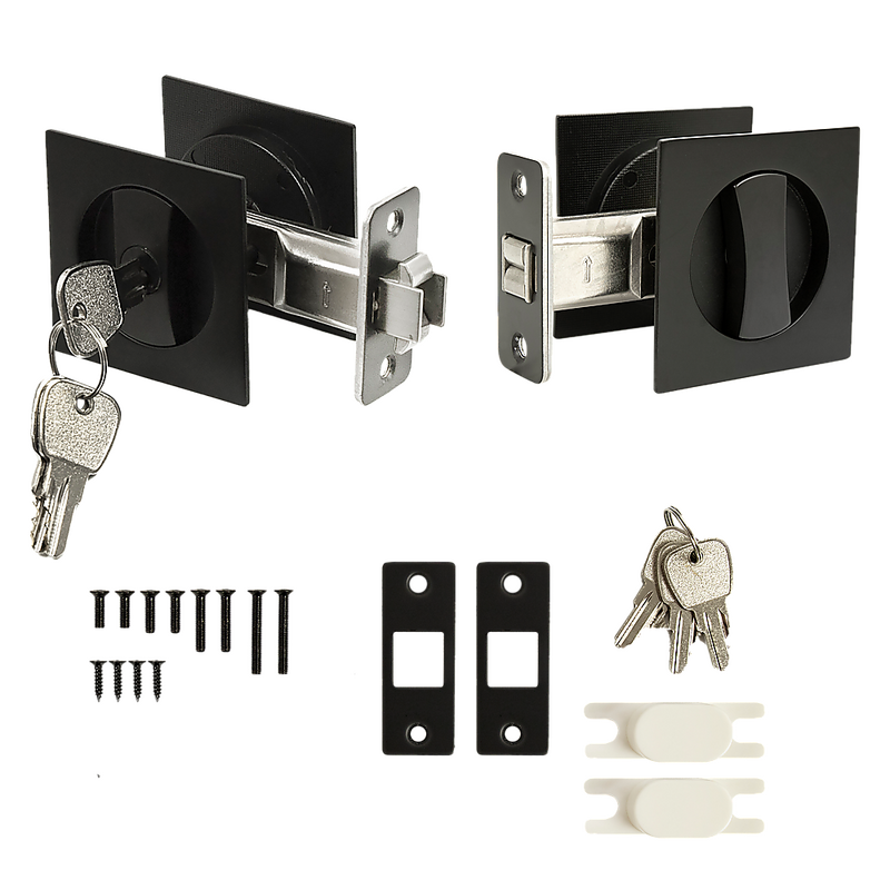 2x Contemporary Entry Square Pocket Door Hardware with Key
