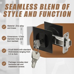 Remarkably, this pocket door lock doesn't require edge slotting. Its original round door hole allows for straightforward installation, eliminating concerns about warping or instability. Designed for standard drilled doors, it accommodates 1" diameter holes. Crafted from durable zinc alloy and brass, this flush pocket door hardware is resistant to breakage and painted to withstand moisture and corrosive substances.