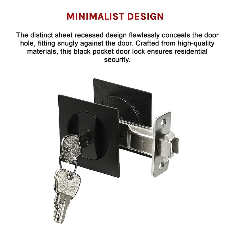 The sleek black pocket door lock is gaining popularity for its minimalist design and exceptional quality. Its straightforward square panel in pure black complements any furniture, elevating your home aesthetics. The distinct sheet recessed design flawlessly conceals the door hole, fitting snugly against the door. Crafted from high-quality materials, this black pocket door lock ensures residential security.