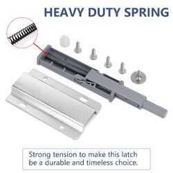 The housing of cabinet push latch made by aluminum alloy, no rust. Larger heavy duty spring mechanism to ensure open and close the door up to 200,000 times. Touch latch built-in magnet, magnetic push latch can make the door more tightly united.