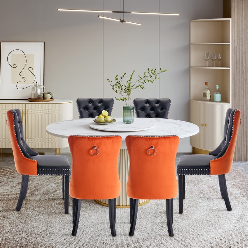 2x PU Faux Leather & Velvet Dining Chairs-Black & Orange