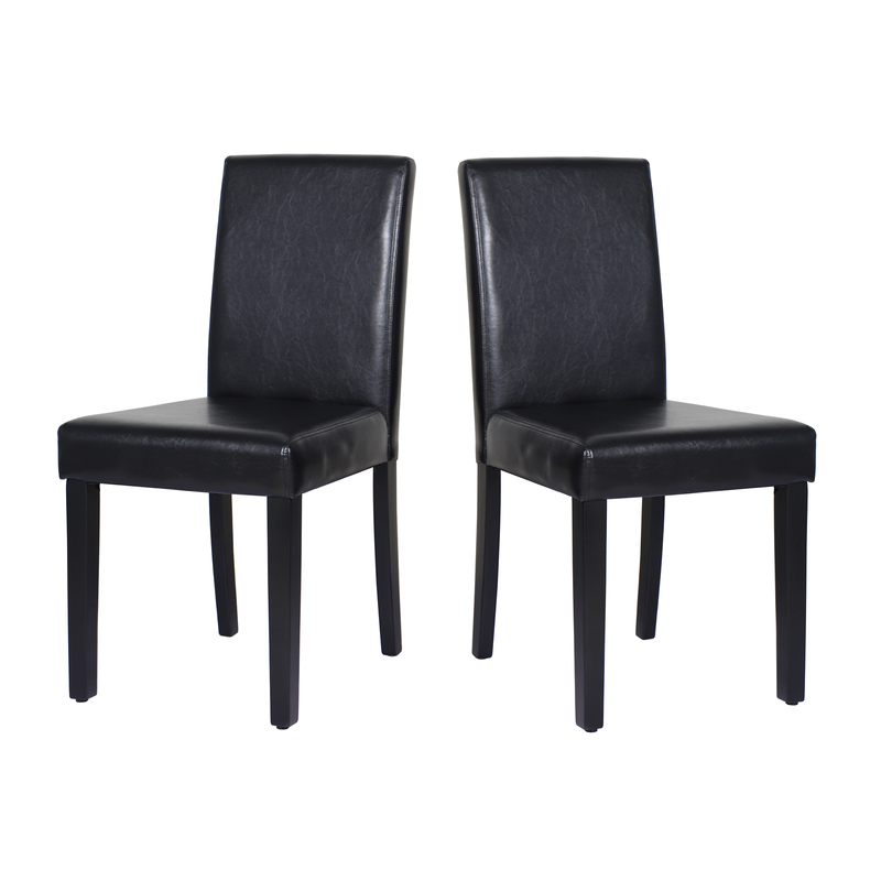 2x Wooden Frame Black Leatherette Dining Chairs with Solid Pine Legs