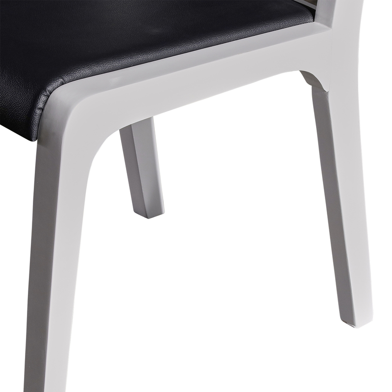 This contemporary, upholstered dining chair is the ideal addition for your dining area. This generously sized chair features a padded, upholstered leatherette seat, mid high back rest and steel inner frame for strong support.