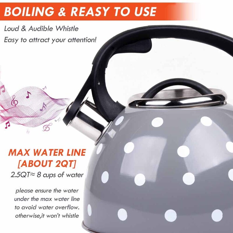 Large diameter spout design, can direct water injection, time saving, fast and safe design. Loud & automatic whistling catch your attention even in a noisy environment. When you focus on your housework, movies, music, or any other things, the teapot will remind you with a whistle after boiling water. To prevent you from forgetting to turn it off and drying the water up.