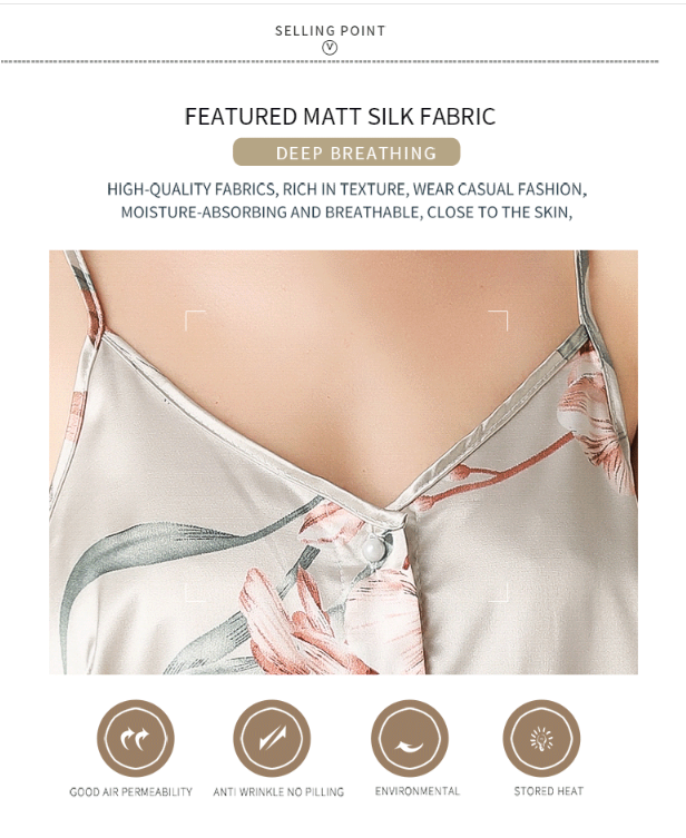 The 3 Pcs Set Woman Elegant Nightdress is a luxurious and fashionable sleepwear set designed to provide the ultimate comfort and elegance. Crafted from smooth and silky silk satin material, this pajama set offers a delightful and indulgent feel against the skin, making it perfect for warm summer nights. The elegant style adds a touch of sophistication to your sleepwear collection, while the versatile design includes a sleeveless top, short pant, and a robe, offering a complete and stylish sleepwear ensemble.