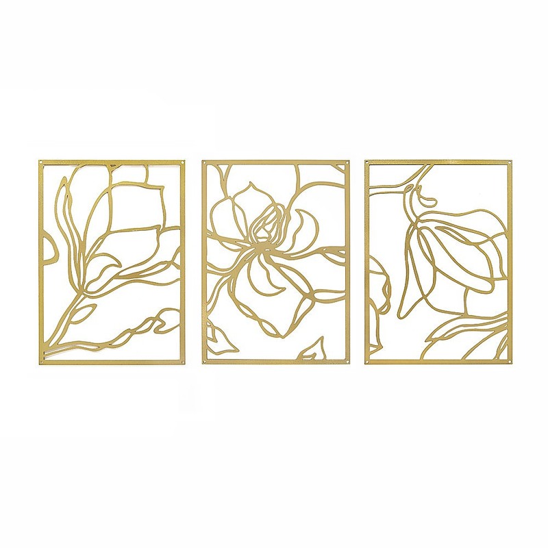 3 Piece Gold Flower Metal Wall Decor Abstract Floral Aesthetic Set of 3