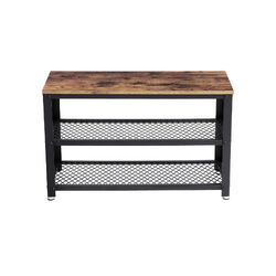 - Welcome Home. Transform your entrance with this stylish shoe bench and coat rack. Featuring warm rustic brown panels and a sleek black steel structure, you'll love the inviting atmosphere it creates.